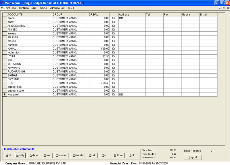 The Excel accounts software takes the pains of all the accounting principles like debit, credit, assets and liabilities. The user need not to worry about it , just simply enter the transactions in to the system just like an excel sheet.