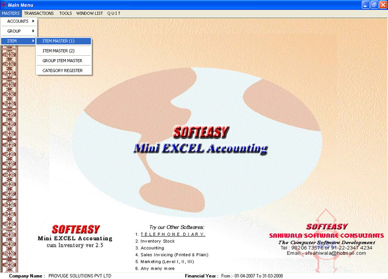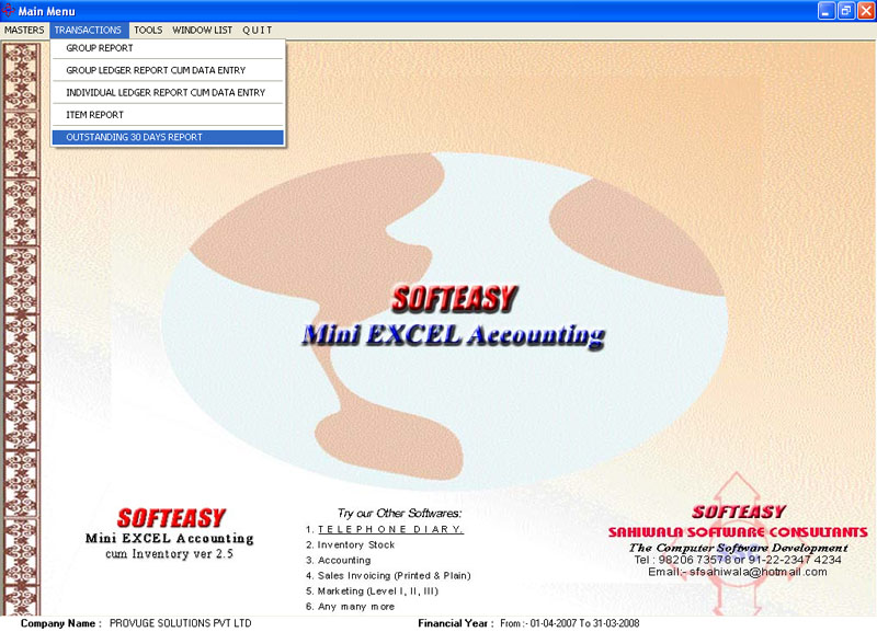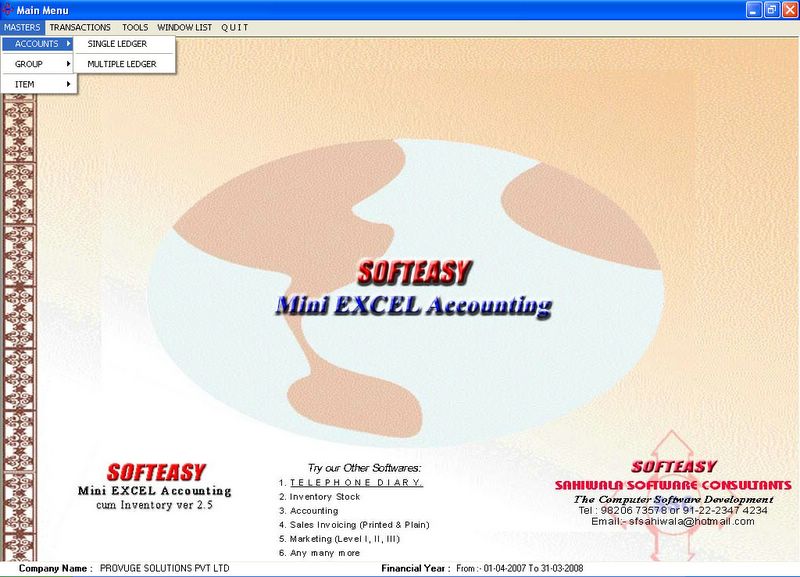 The free download excel sheet accounting software is available upon the the request by just e mailing us.