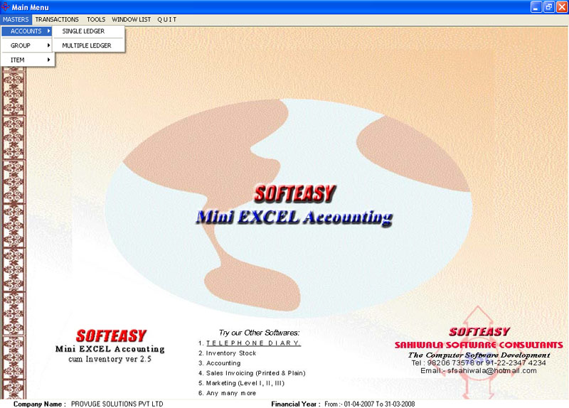 This is readymade microsoft excel accounting software and it can become customized excel accounting software as per the clients needs.
